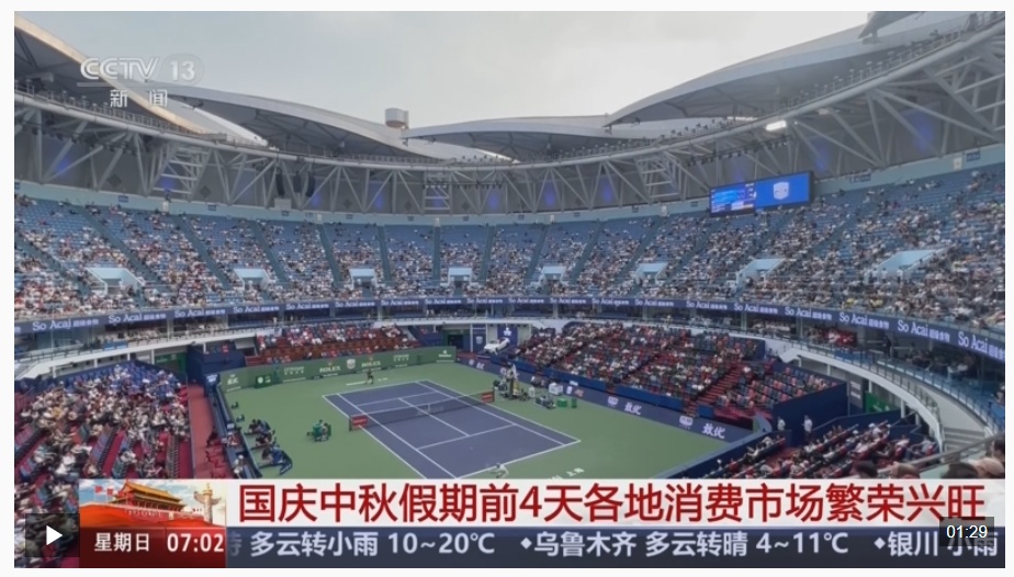 服务消费活力十足。赏秋游、自驾游、红色游等持续火热,国庆档电影票房突破10亿元,中国网球公开赛等多项体育赛事掀起观赛热潮。