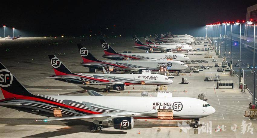 数字背后,是花湖国际机场作为国家重大生产力布局的战略价值日益凸显。2023年,鄂州携手武汉获批空港型国家物流枢纽城市,花湖国际机场正式成为湖北对外开放的“空中出海口”。