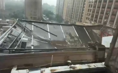 10月2日,有视频显示,江苏省连云港市东海县名家厨房饭店楼层顶部外立面出现塌陷,事发时有新人正在酒店内准备婚礼仪式。