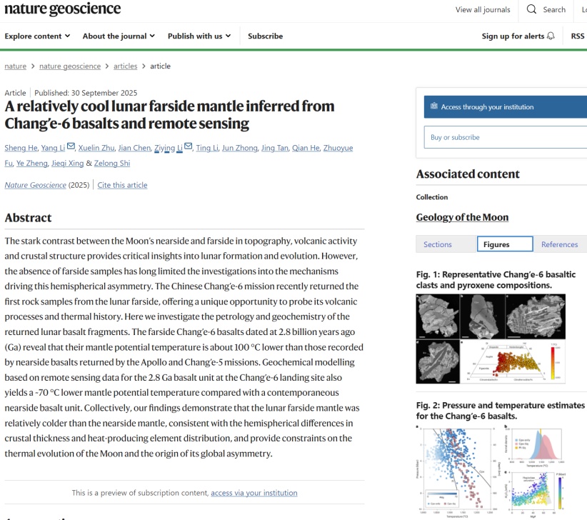 中国科学家首次基于嫦娥六号月球背面样品研究发现,月球背面月幔相比月球正面更“冷”,这一发现进一步深化了人类对月球“二分性”现象的认识,为月球正面与月球背面的月幔温度差异提供了岩石学与地球化学等科学依据,为月球演化和“二分性”特征研究提供了关键科学数据。