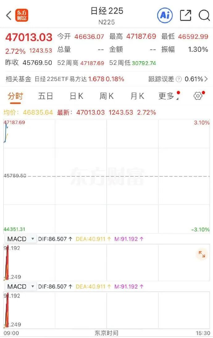 10月6日,日经225指数日内涨超4%,报47601.11点;日本东证指数涨超3%,报3224.27点。日经225指数、日本东证指数均创历史新高。