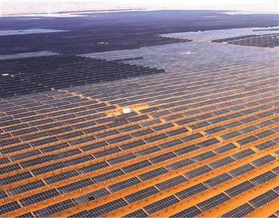 宁夏全力打好“三北”工程黄河“几字弯”攻坚战,截至今年5月底,已完成治理面积422万亩。图为宁夏中卫的腾格里沙漠新能源基地。