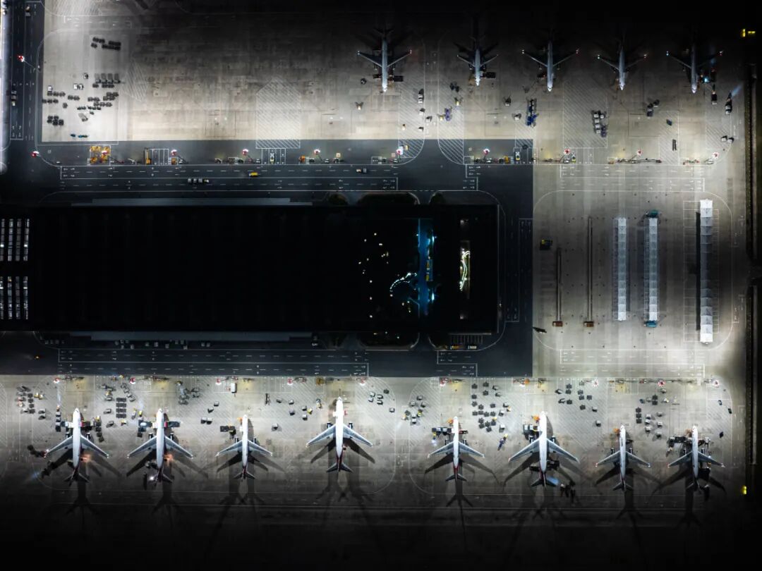 子夜时分,花湖机场灯火通明。新华社记者肖艺九 摄