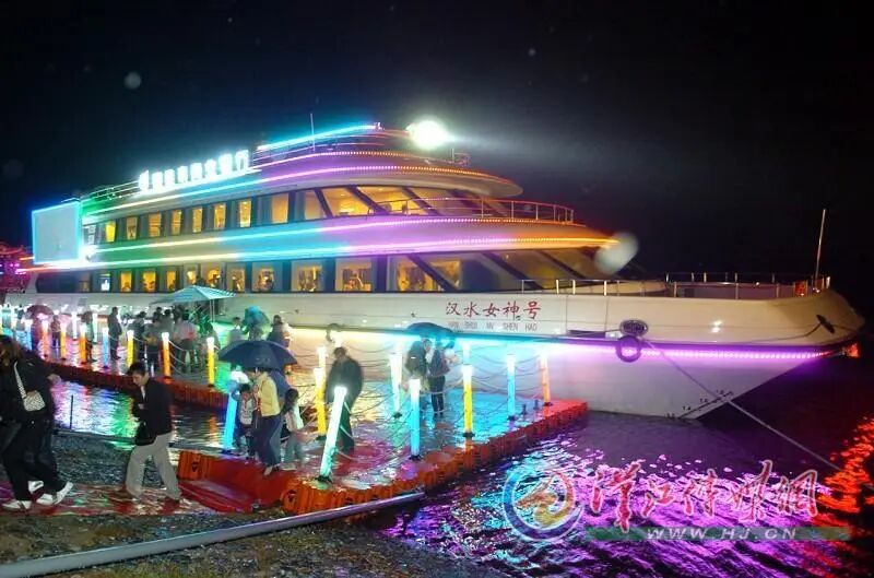 2010年10月1日傍晚,“汉水女神号”豪华游船载着百余名乘客开始了汉江风光之旅。记者李云飞摄