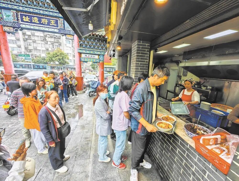2024年“十一”期间,市民和外地游客排长队品尝襄阳牛肉面,“打卡”襄阳特色美食。记者谢勇摄