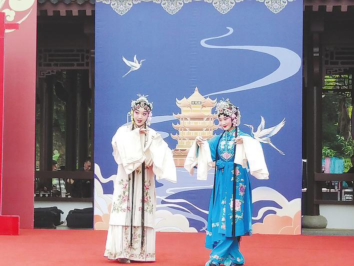 黄鹤楼东门广场,武汉汉剧院为游客带来《白蛇传》等选段的精彩演出。(湖北日报见习记者 唐雪舟 摄)
