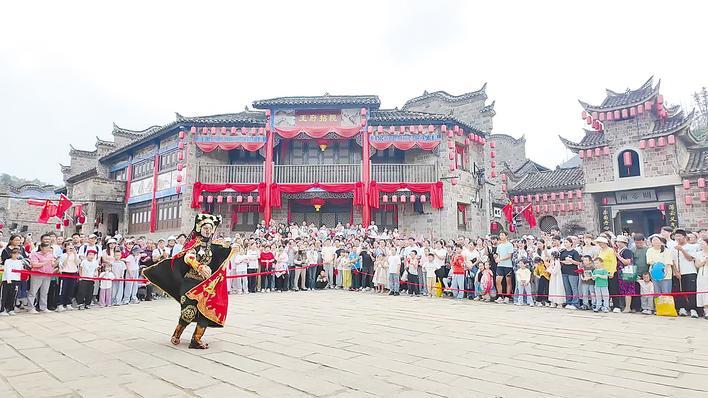 红安影视幻城推出的《川剧变脸》等演出让游客近距离感受传统艺术魅力。(湖北日报通讯员 王亮 摄)