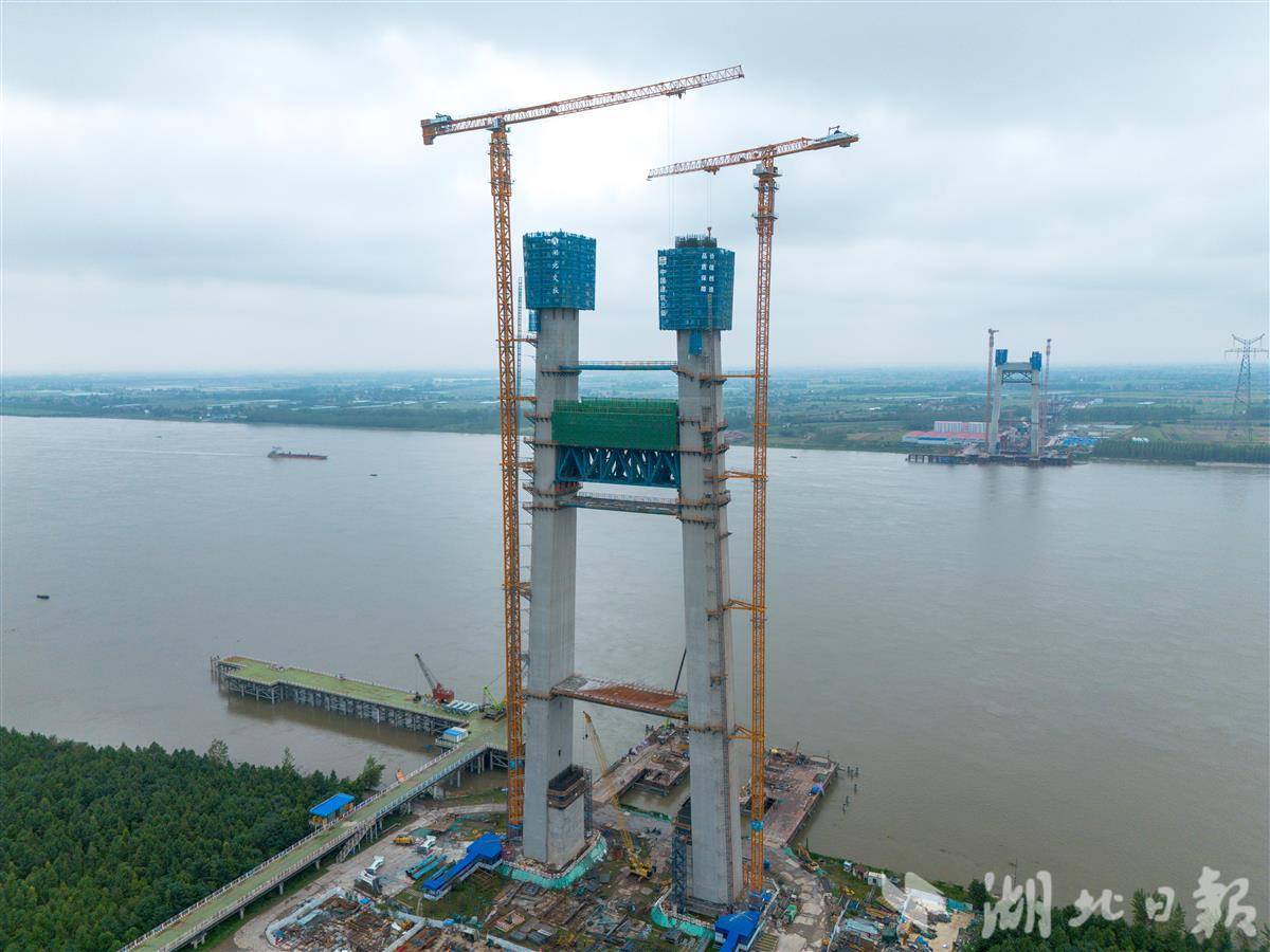 荆州李埠长江公铁大桥北岸主塔一共37节,高215.5米,现已施工到第29节,高度突破160米。中建三局荆州李埠长江公铁大桥项目经理何承林介绍,国庆、中秋小长假,230多位工人坚守岗位,一手抓生产,一手抓安全,力争明年1月底主塔封顶。