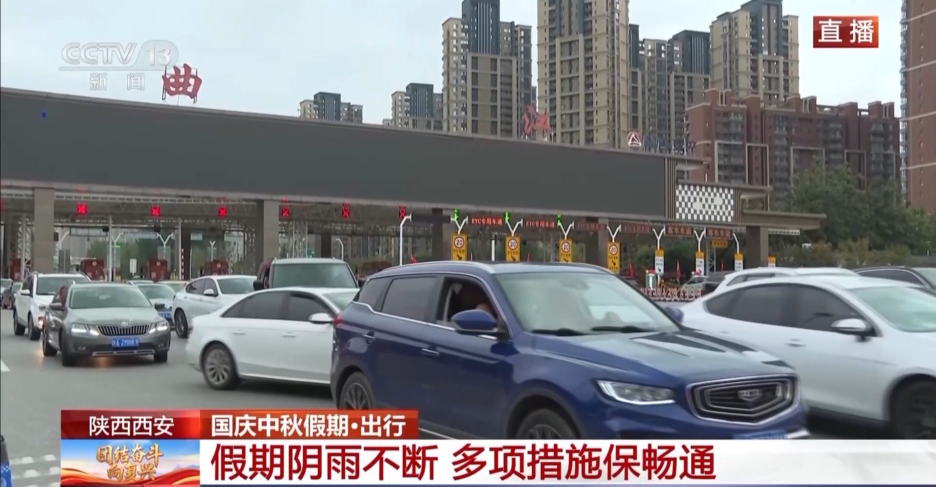 总台记者 阮超:今年国庆中秋假期期间,西安出现了连续的阴雨天气,降雨在影响人们度假的同时,也会对返程客流造成一定影响。所以西安绕城高速在各个收费站准备了截水板、防汛沙袋等防汛物资,来应对突发天气。为了确保返程顺利,西安绕城高速还采取了线上线下结合的方式疏导车流,监控中心与分中心进行信息共享,根据车流变化科学调节流量。同时,也与百度、高德等公司实现实时路况信息共享,通过导航提前引导司机避开堵点。