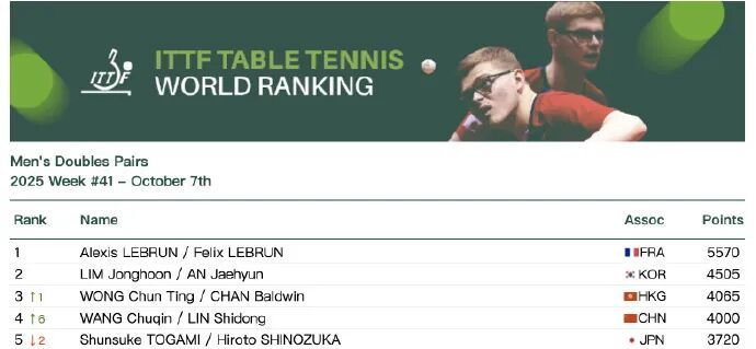 王楚钦、林诗栋、梁靖崑、向鹏、周启豪