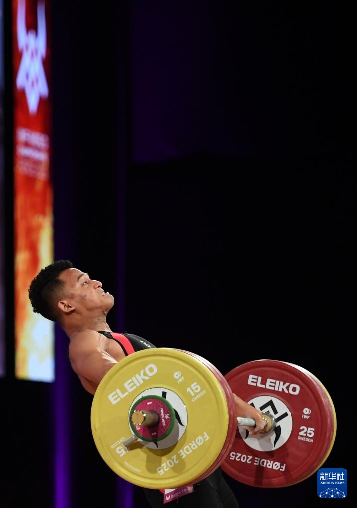 当日,2025世界举重锦标赛男子79公斤级比赛在挪威弗勒举行。