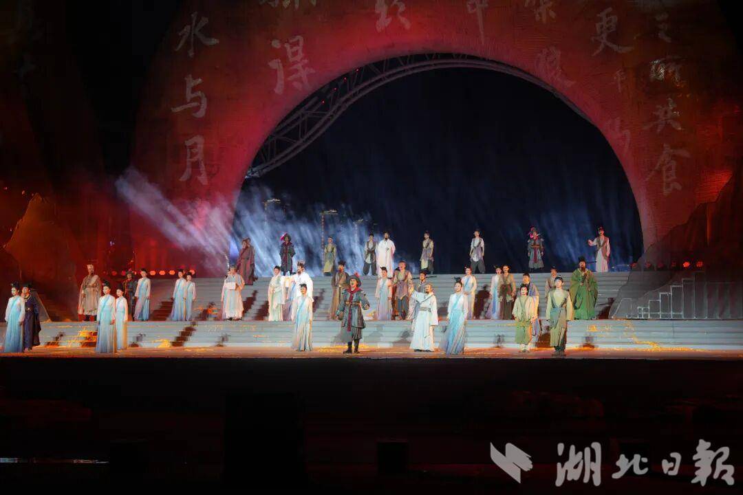 旋转舞台上,演绎着古老的秦简故事;汉口江滩边,戏曲嘉年华演出传来阵阵喝彩声;黄冈东坡外滩,苏东坡《江城子·密州出猎》的吟诵响彻云霄……