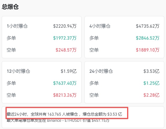 Coinglass网站数据显示,过去24小时内,虚拟货币共有超16万人爆仓。