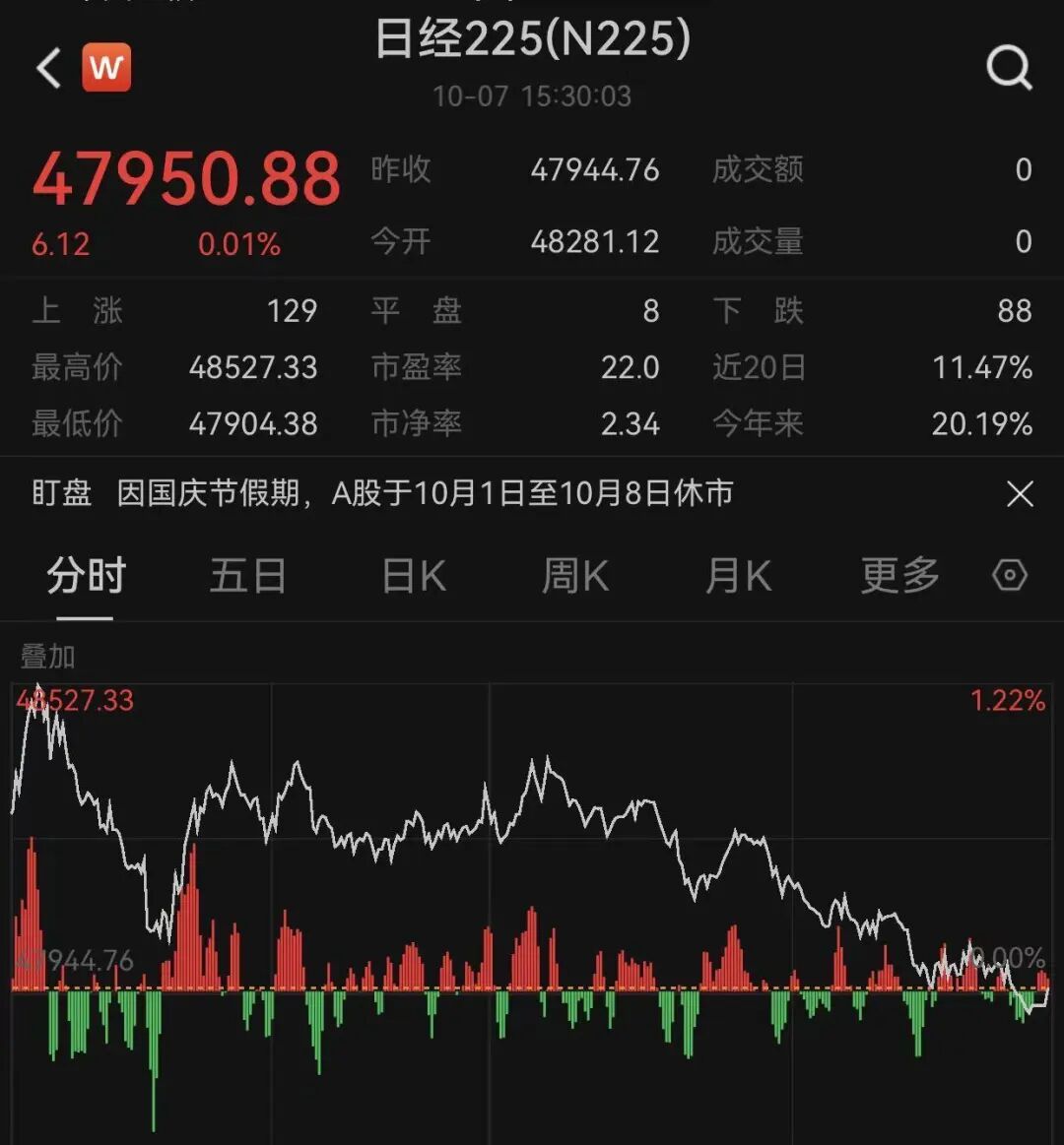 在今日股市方面,虽然亚太主要股指收盘多数上涨。但日经225指数尾盘回落仅涨0.01%报47950.88点,此前一度涨破48500点。