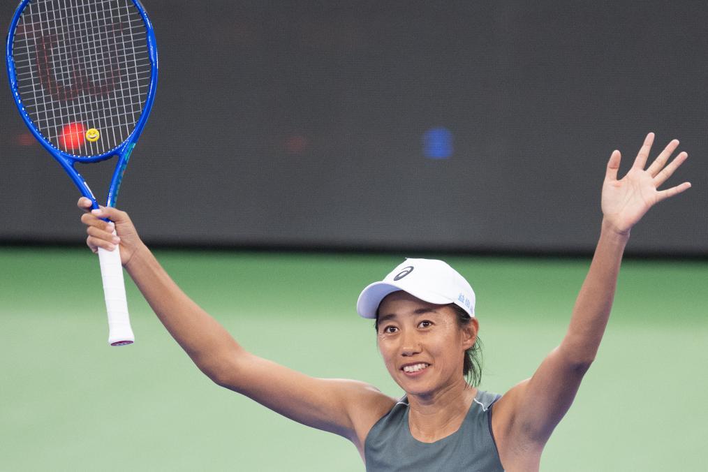 当日,在2025年WTA武汉网球公开赛女子单打首轮比赛中,中国选手张帅2比1战胜美国选手纳瓦罗,晋级下一轮。