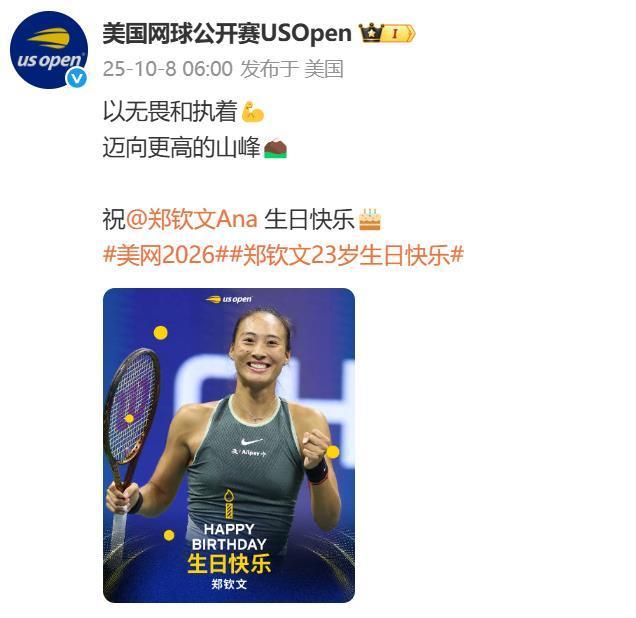 10月8日是中国网球金花、湖北姑娘郑钦文的23岁生日。四大满贯先后发来贺电,祝福郑钦文在经历伤情后能顺利康复,“风雨过后更见风骨。”未来再创职业新高,“以无畏和执着,迈向更高的山峰。”