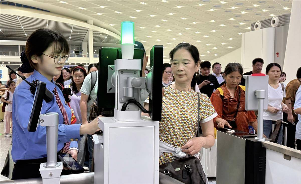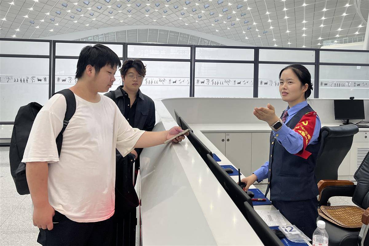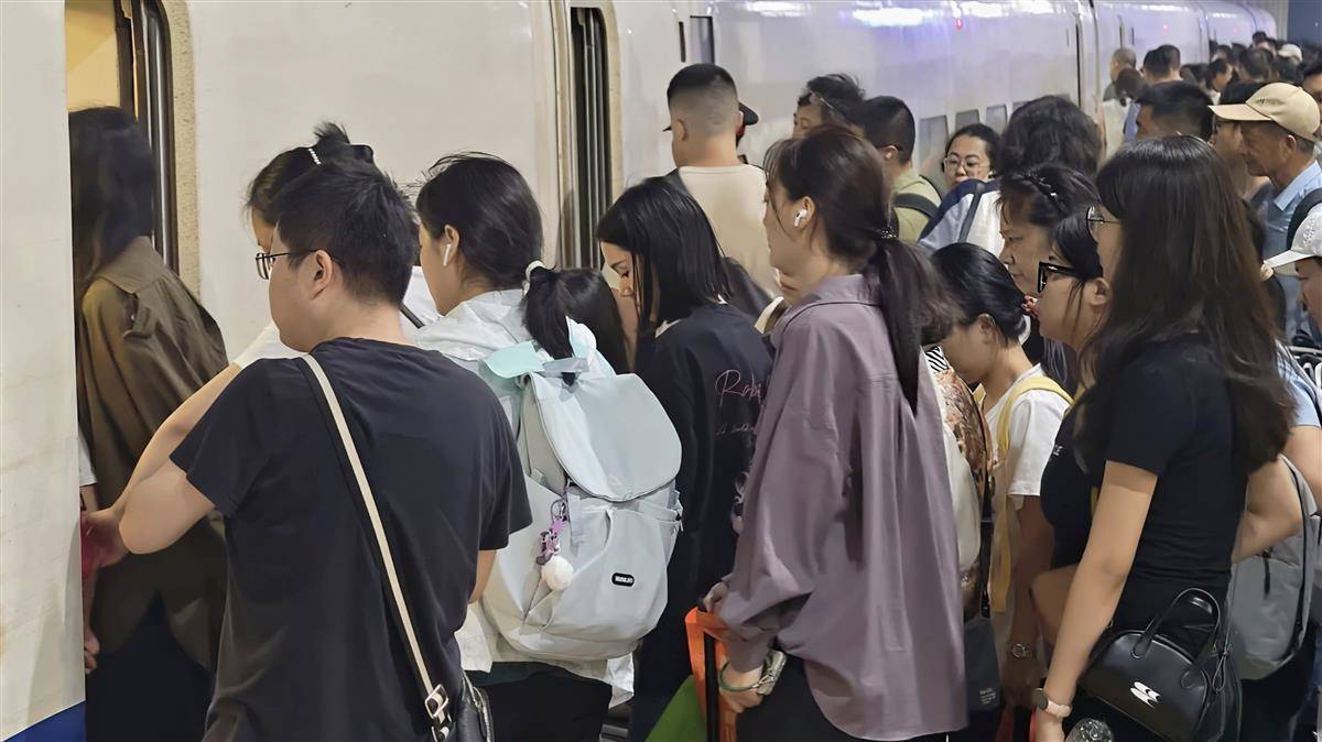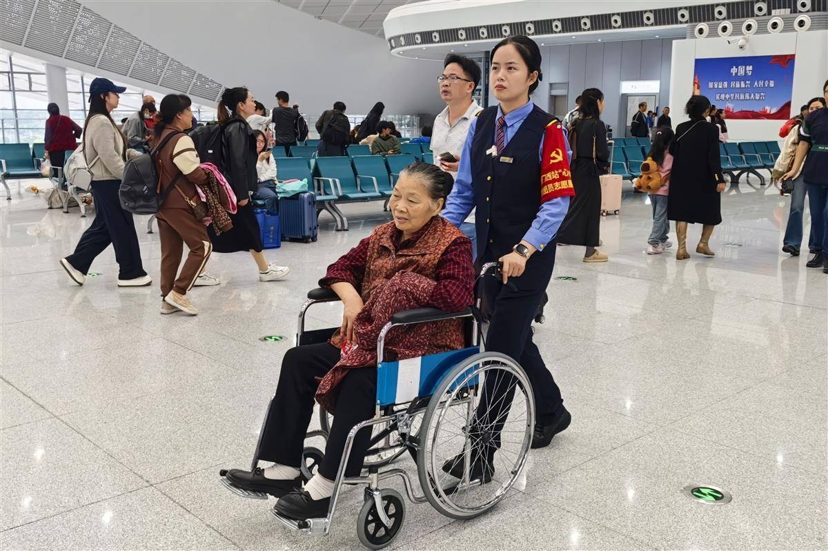 据了解,面对激增客流,荆门西站精准施策保障畅通:针对高峰车次提前20分钟开启双通道检票;因线路升级为途经站,站台实施分区排队引导,党团员突击队值守重点车厢,专人防护扶梯安全;动态优化国庆临客“一车一案”,高效匹配运能需求。安检环节全员上阵,20名安检人员高峰时段增开通道至四个,确保进站流速。(湖北日报全媒记者 陈少哲 通讯员 李丽 摄)