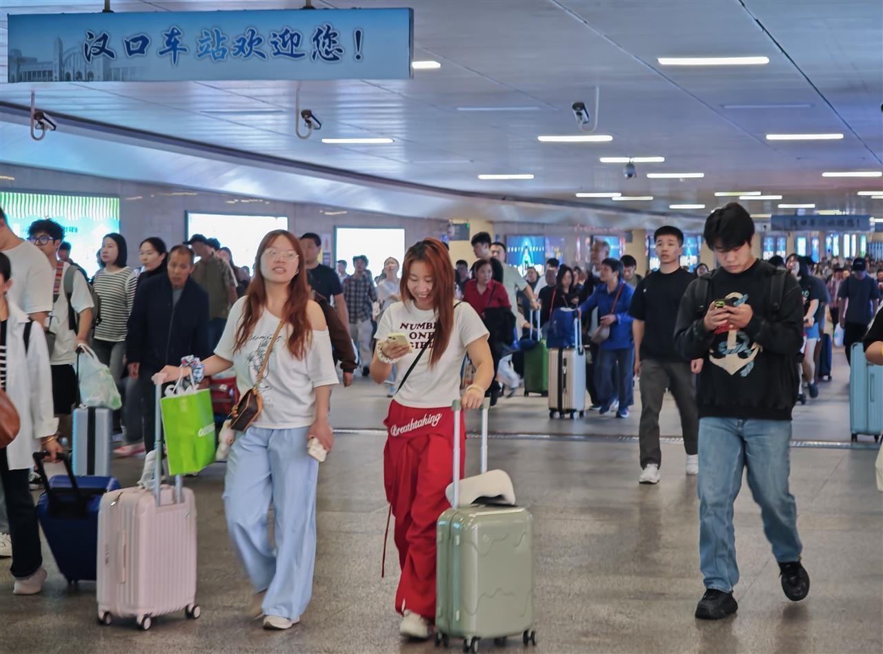 10月8日,汉口站预计返程旅客达到22万人次,同比预计增长5%,迎来返程客流高峰。汉口站在国庆期间预计发送旅客166万人次,同比2024年国庆期间增长5%。节前出行高峰是10月1日,发送旅客24.5万人次,同比增长9.8%,突破2025年5月1日发送旅客23.7万人次纪录,再次刷新汉口站历史单日发送旅客量最高纪录。