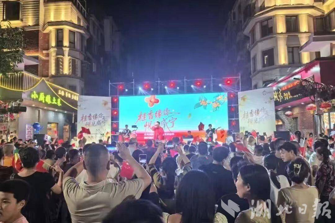 各地着力推动文化活动从单纯的观赏性向沉浸式、体验式、消费式转变,将文化盛宴延伸为消费热点。咸宁市于10月1日至3日在月亮湾街区举办“桂香缘你·悦见咸宁”主题音乐节,整个街区化身为开放的诗意舞台,经典老歌与青春潮音交替上演,成功吸引了大量市民游客。特别是当《我和我的祖国》旋律响起时,引发万人同唱。音乐节成功塑造了“音乐+美食+休闲”的复合型消费场景。游客手捧特色小吃,漫步于音乐与桂香弥漫的街区。10月1日至3日,月亮湾街区累计接待游客超10万人次,街区各商户营业额平均增长达50%。