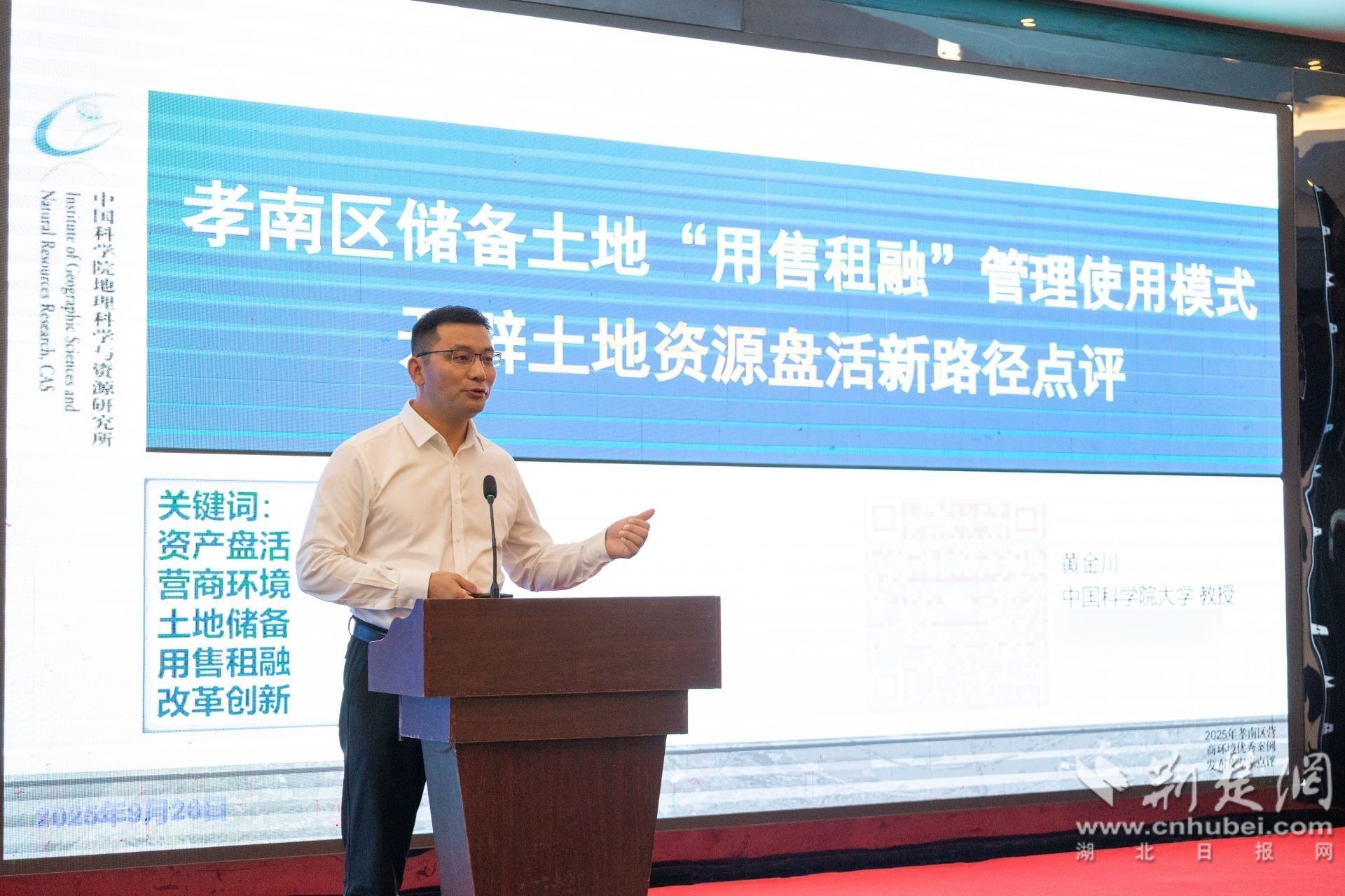 荆楚网(湖北日报网)讯(记者黄菲 通讯员熊夫、胡书骋)日前,孝南区举办2025年度营商环境优秀案例发布会,中国科学院大学教授、中国科学院地理科学与资源研究所城市室副主任黄金川出席会议,现场为孝南区自然资源和规划局副局长何永明发布的《探索政府储备土地“用、售、租、融”管理模式》案例进行点评,并展开主题演讲。
