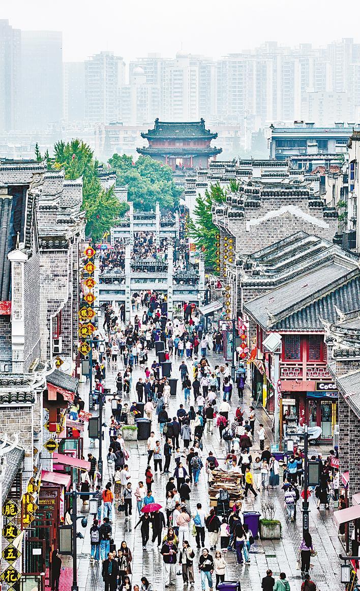 10月6日,历史悠久的襄阳北街人潮涌动。 (湖北日报全媒记者 刘曙松 通讯员 王虎 摄)