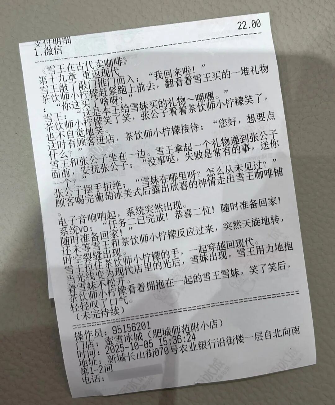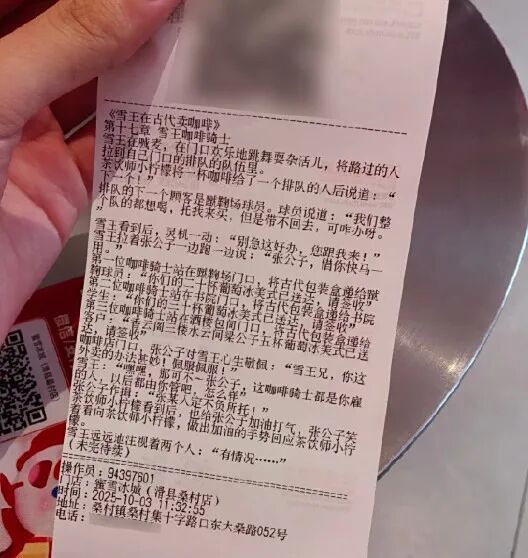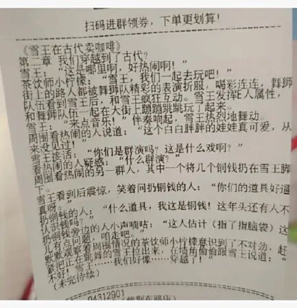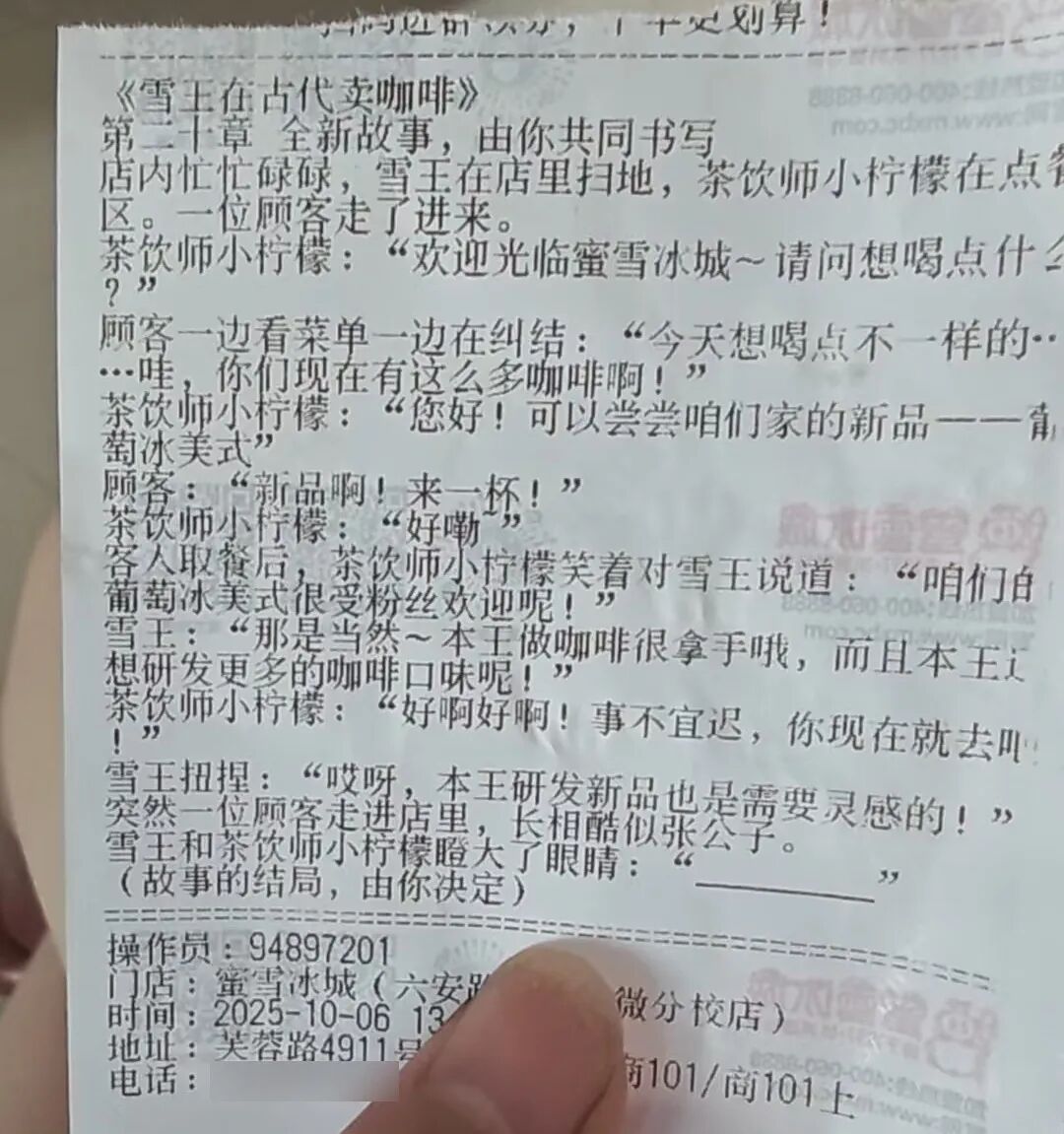 此前,“蜜雪冰城小票藏连载小说”引发热议。