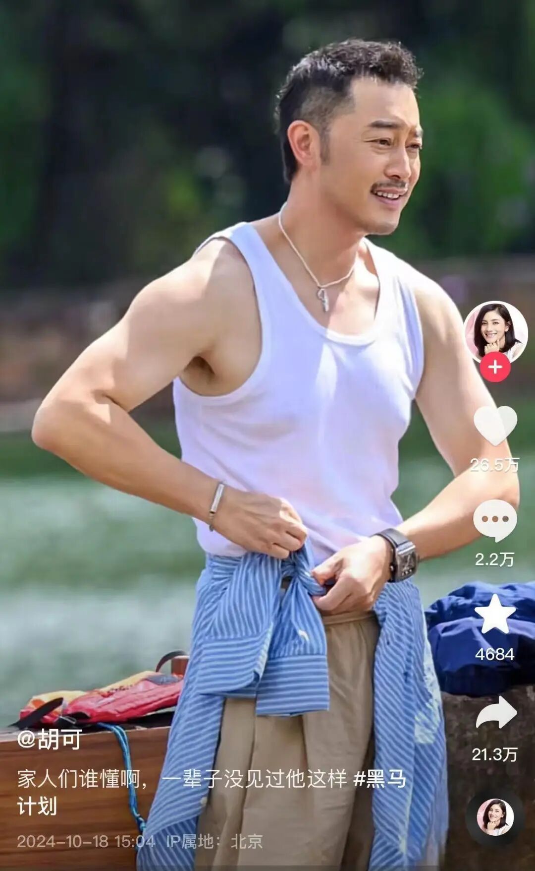 2024年10月18日,男星沙溢晒出穿背心秀肌肉的照片,瘦身成功。