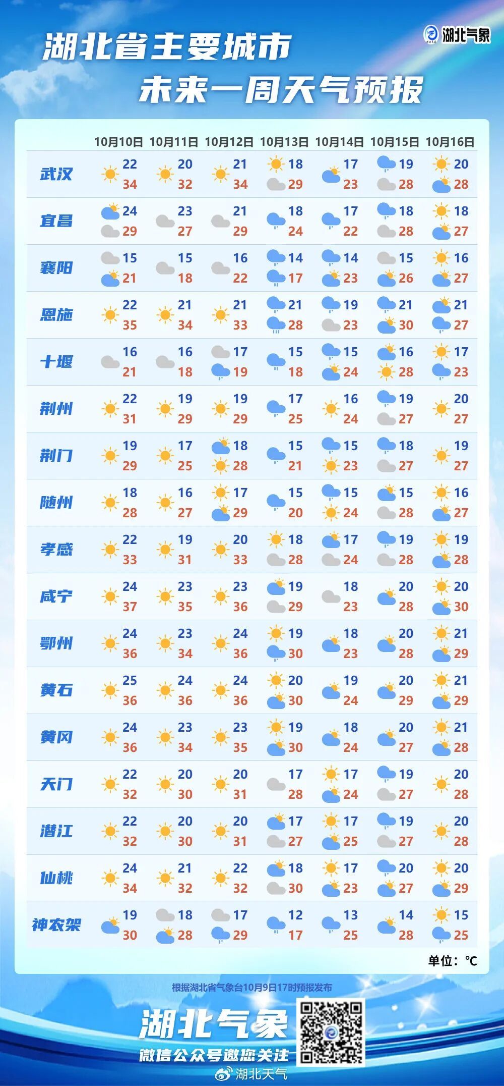 据武汉市气象台最新天气周报