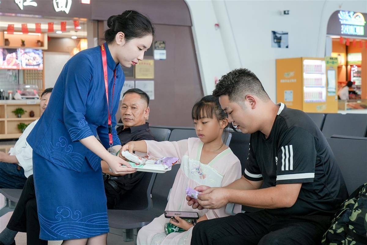 为保障“双节”期间旅客顺畅出行,三峡机场重点关注航班和客流高峰时段的运行情况,灵活调整值机柜台、安检通道开放数量,并增派志愿者加强在值机区域、安检区域、到达大厅、停车场等旅客流程关键节点的引导服务工作。此外,节日期间三峡机场还特别推出数字人“大峡”,每日播报出行小贴士,包含乘机流程、优惠机票、航旅产品、商业促销信息等,为旅途点缀温馨与惊喜。