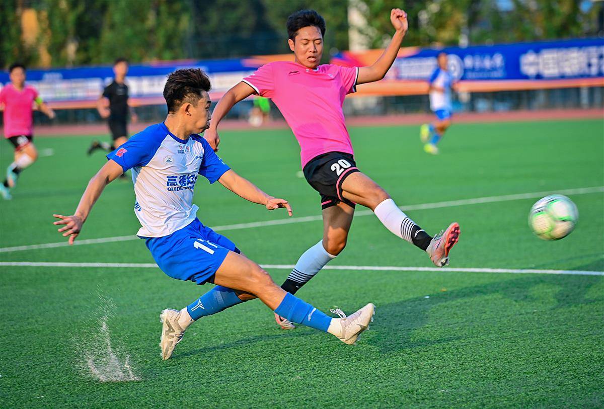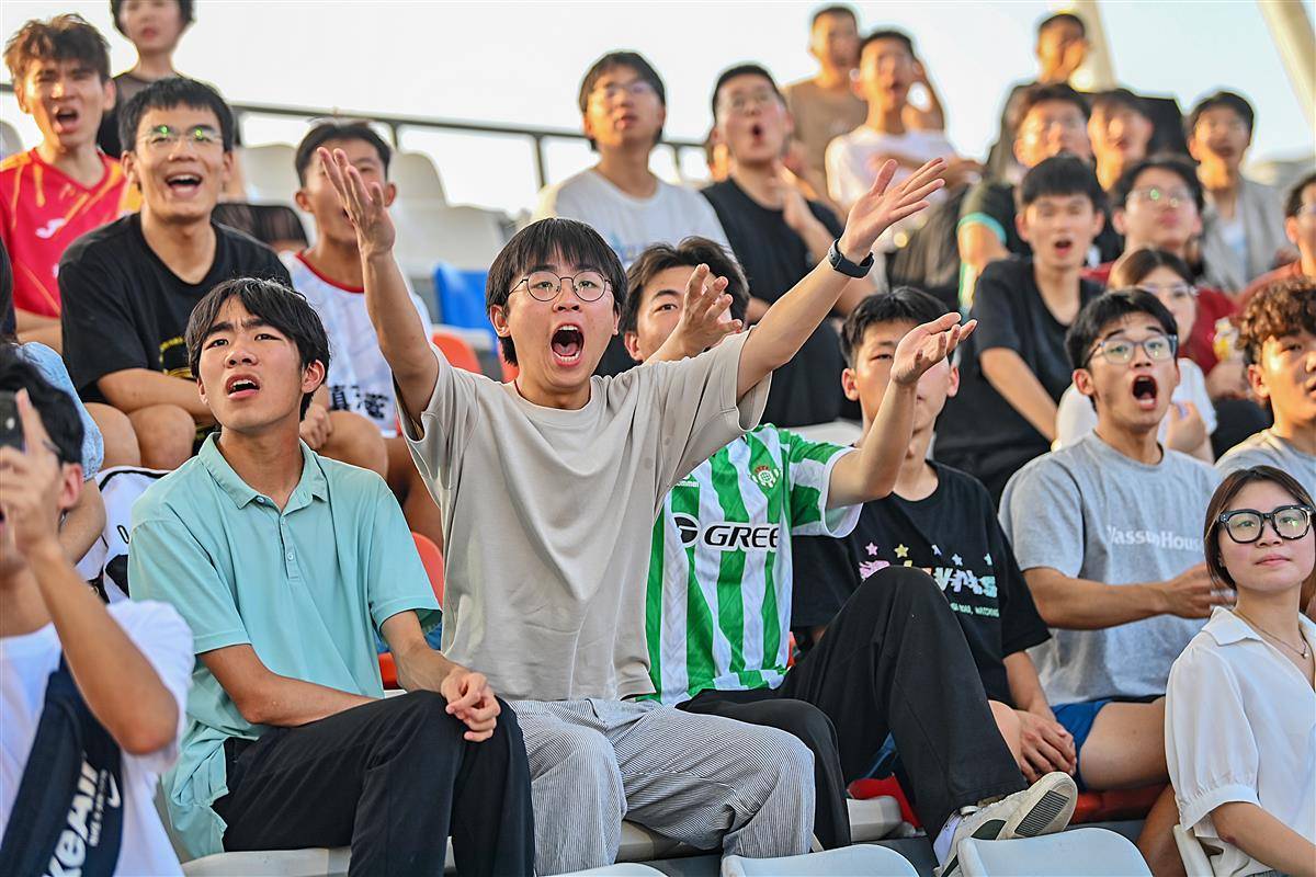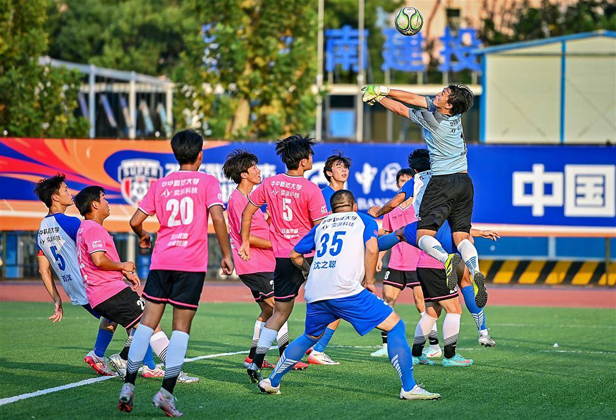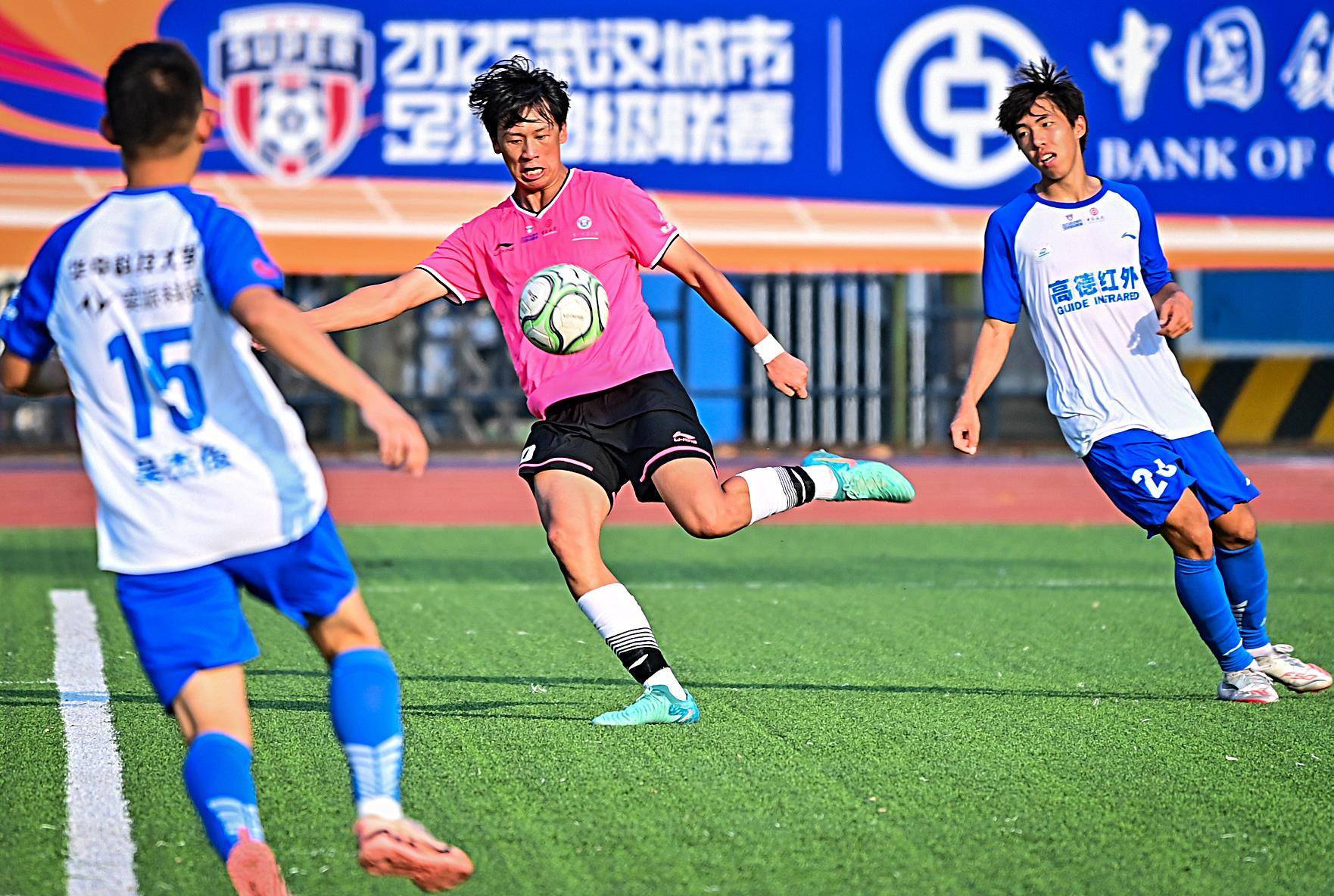 10月9日下午,2025武汉城市足球超级联赛(简称“汉超”)高校组第二轮在华中科技大学中心体育场打响。华中科技大学主场对阵华中师范大学,经过90分钟的比赛,华中科技大学最终以2:0获胜。汉超联赛将持续至11月,届时城区组总冠军与高校组总冠军,将展开对“超级杯”的争夺。(湖北日报全媒记者 朱熙勇 摄)