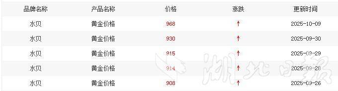 10月9日晚6点半,位于武汉市六渡桥地铁站A出口旁的一排水贝黄金门店内,陆陆续续迎来下班后来买黄金首饰的顾客。各家金店门外的大屏上,显示当天金价在918到926元/克左右。在金饰消费市场上,相比品牌金店,水贝黄金的价格相对“低调”。但受国际金价上涨等因素影响,今年来水贝黄金价格也在向1000元/克逼近。