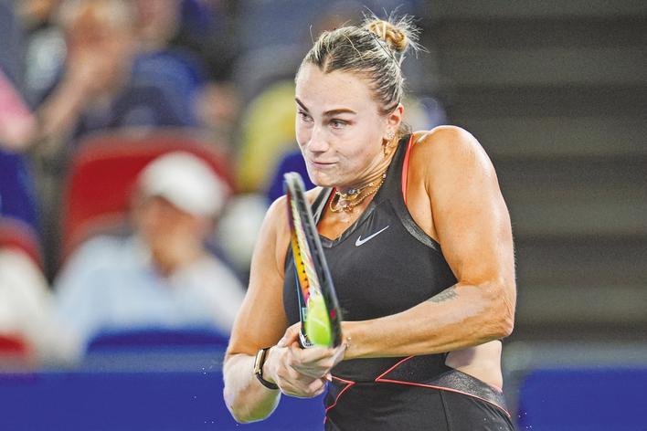 10月9日,萨巴伦卡在比赛中回球。(湖北日报全媒记者 任勇 摄)