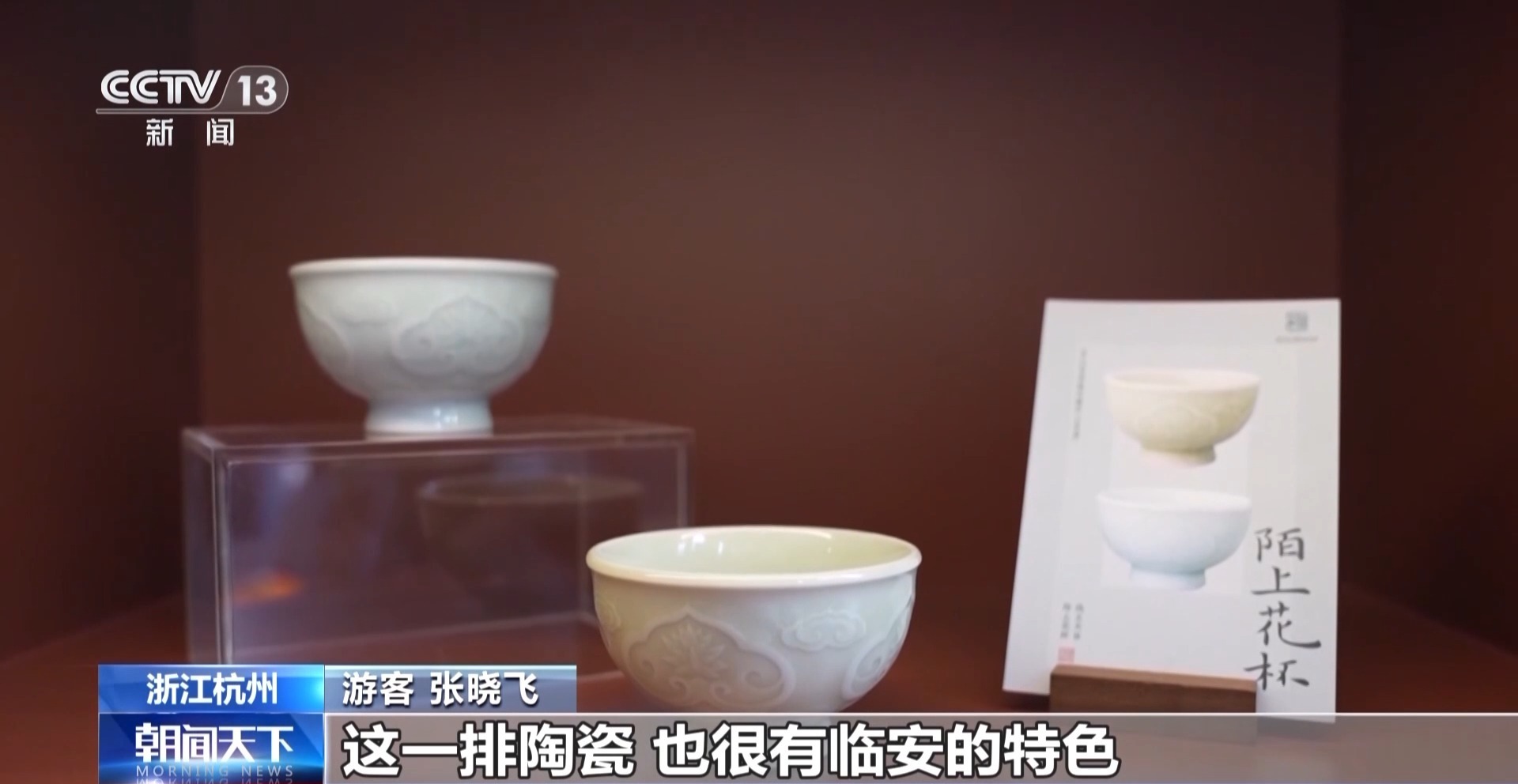游客 张晓飞:很有文化特色,包括这一排陶瓷,也很有临安的特色,博物馆里面好像也有原版的,像这个是缩小版的、迷你版的。感觉做工很精致,有点古代的风格。