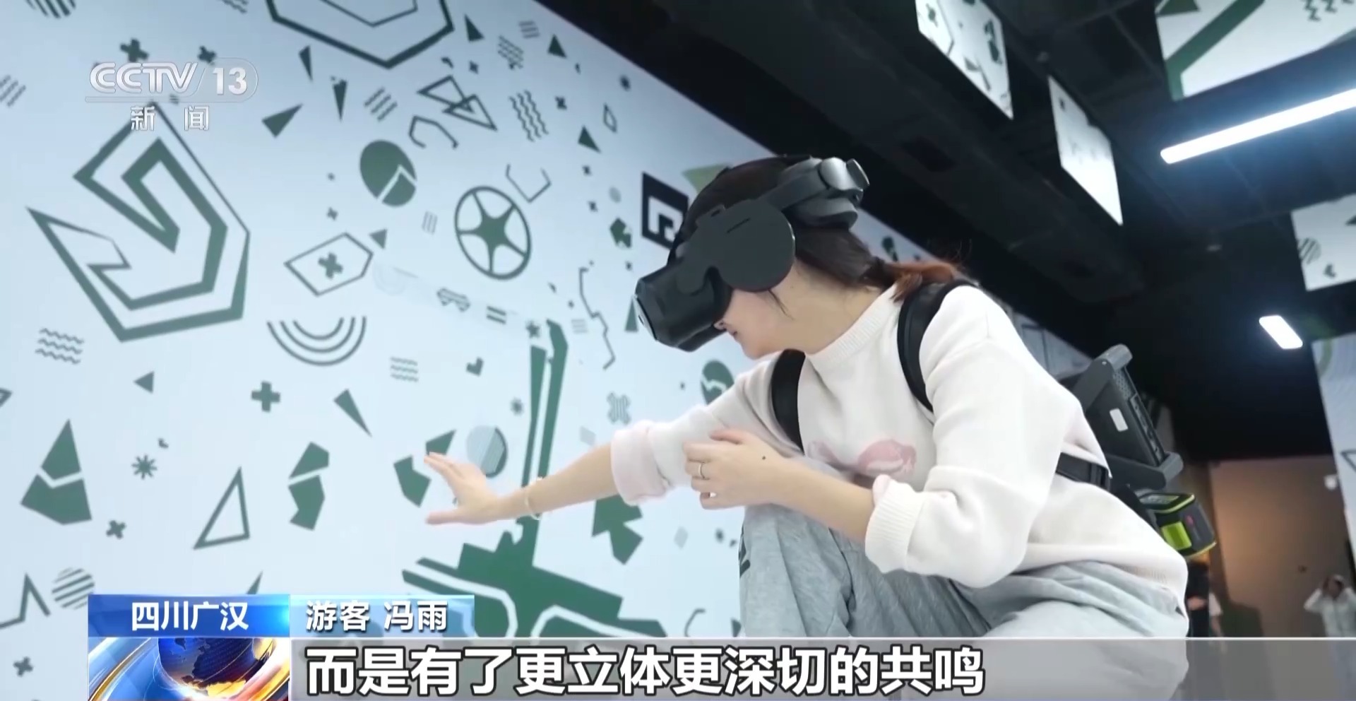 在三星堆博物馆新馆,新一轮考古发掘出土的文物吸引了来自全国各地的游客。在这里,不仅可以近距离感受精美绝伦的文物,还能在互动体验厅“穿越时空”,体验三星堆人的服饰、发式、冠式,感受中华文化的魅力。你也可以在XR体验区沉浸式感受神鸟形象,参与到古河道收集文物的互动体验中。