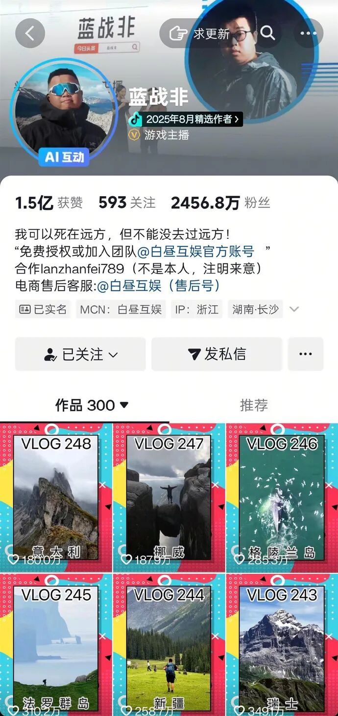 9月25日,据读秒财经,千万粉丝博主”蓝战非“多平台被禁止关注。10月10日下午,记者查询发现,”蓝战非“的抖音、小红书平台账号已恢复至可以关注状态。