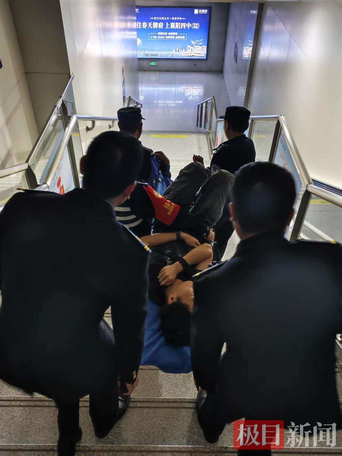 短短几分钟内,车站工作人员已携带急救药箱、担架等救援设备集结完毕,值班民警也迅速到位,一条生命救援的绿色通道在站台上准备就绪。