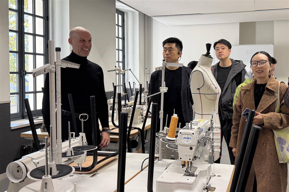武汉设计工程学院时尚设计学院院长况敏(右一)在法国国际时装学院就教学实验条件进行交流。武汉设计工程学院供图
