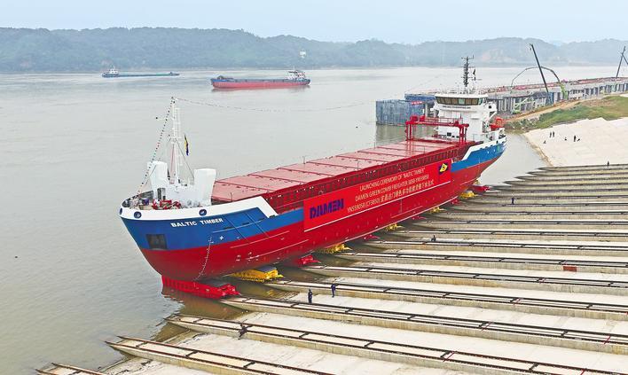 10月10日下午3时30分,由达门船舶新建造的长89.7米、宽12.5米,总吨数2570GT,载重3800吨的多功能货船,通过国内首创的集成式船舶反拉下水系统,在经过半小时的平稳下放后顺利入水,这也标志着宜昌达门船舶新址正式投产。当天,宜昌产投(宜都)绿色智能船舶产业园开园暨宜昌达门船舶有限公司新址投产仪式在宜都举行。该项目的建成投运,标志着宜昌在推动船舶制造绿色化、智能化转型方面迈出关键一步,为长江经济带高质量发展注入新动力。
