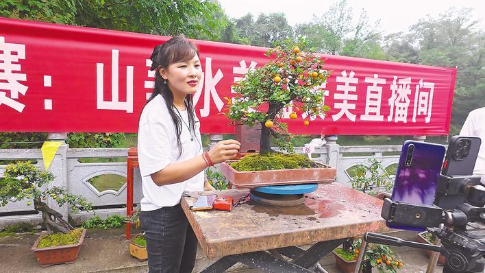 今年“十一”假期,54岁的盆景种植户李长龙一天也没闲着。9月30日起,在他儿子直播间约定看货的外地客户陆续到来,“全靠线上引流,假期首日就卖出4万元”。