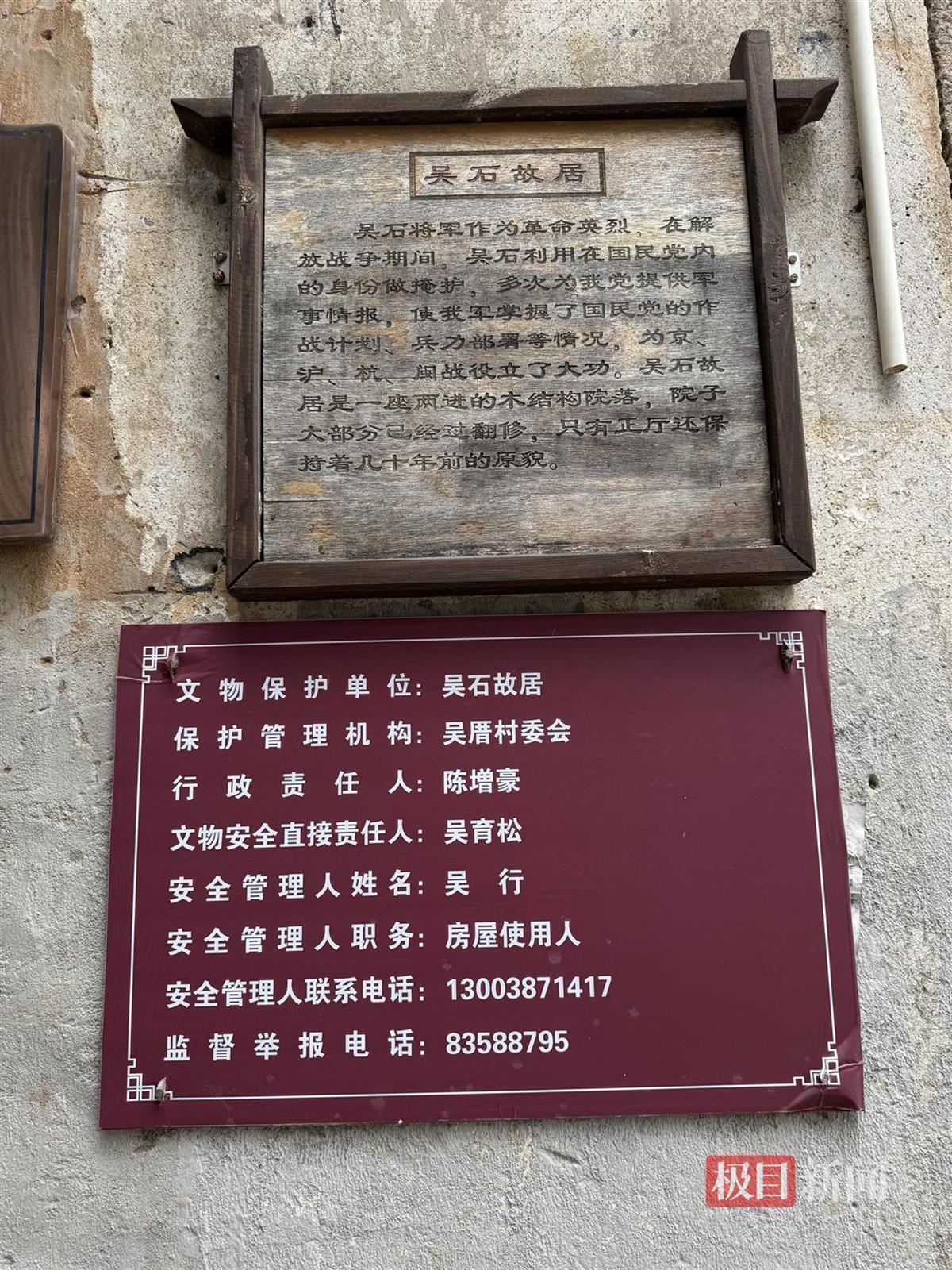 近日,随着电视剧《沉默的荣耀》在央视热播,剧中英雄原型之一——吴石烈士的故居,成为民众追寻历史、缅怀英烈的新热点。10月10日,极目新闻记者探访了位于福州市仓山区螺洲镇吴厝村的吴石故居。这是一座两进式木构院落,墙面上悬挂的文物保护单位标识显示,其安全管理人为吴行。