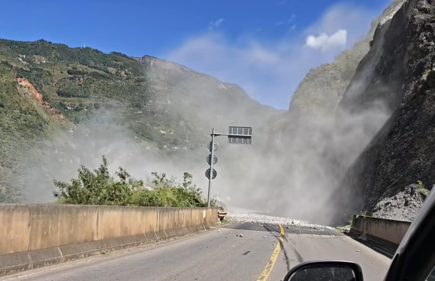 有市民发布的视频显示,昭通鲁甸县路上发生山体滑坡,还有居民家中的天花板被震落。