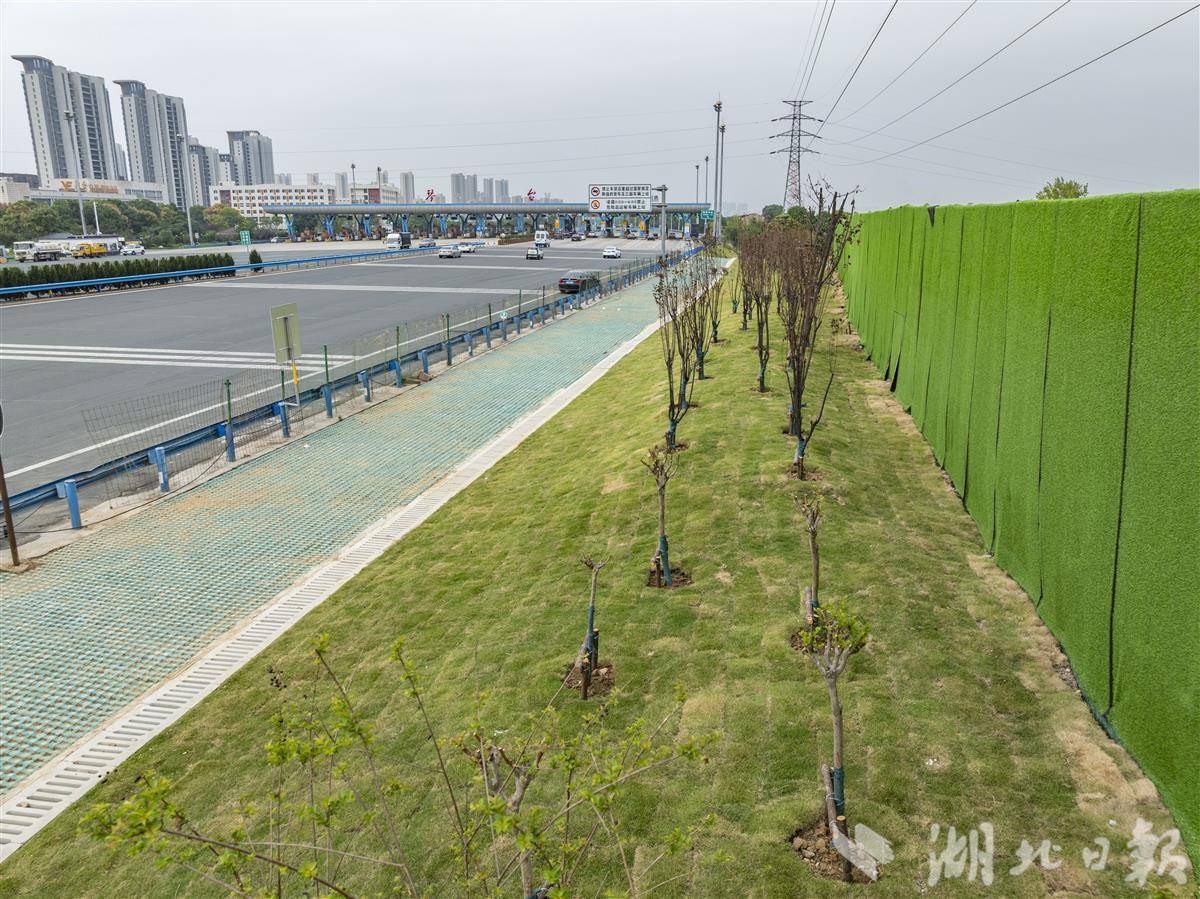 湖北日报讯(记者张竞恒、通讯员周玉琴、肖赟、王越)“来到汉阳,就是知音!”近日,汉蔡高速琴台收费站旁,一排清新的白色落地艺术字矗立在道旁,悄然迎宾。这座武汉西部的重要入城门户,从9月开始迎来焕新,到10月已初见成效。10月11日,记者在现场看到,原本杂乱的草丛、杂树与土沟已不见踪影,取而代之的是整齐翠绿的草坪,令人眼前一亮。