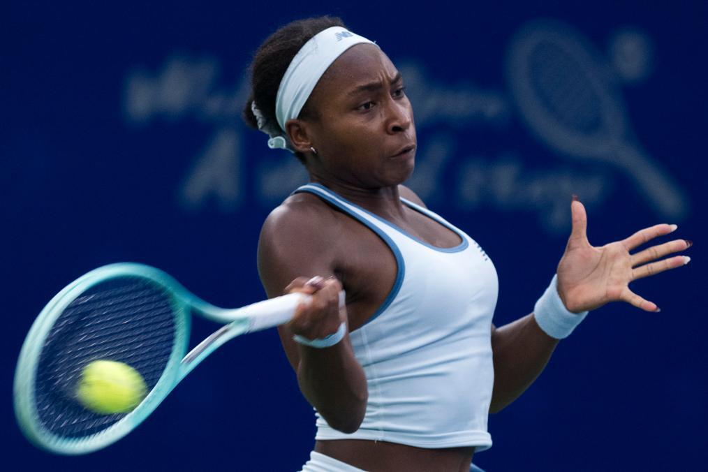 10月11日,高芙在比赛中回球。新华社记者 伍志尊 摄