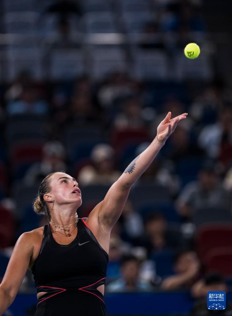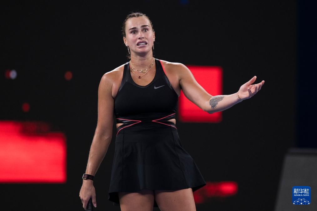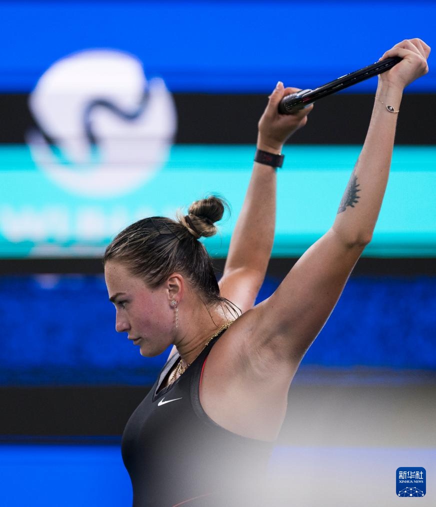 10月11日,萨巴伦卡在比赛中摔球拍。