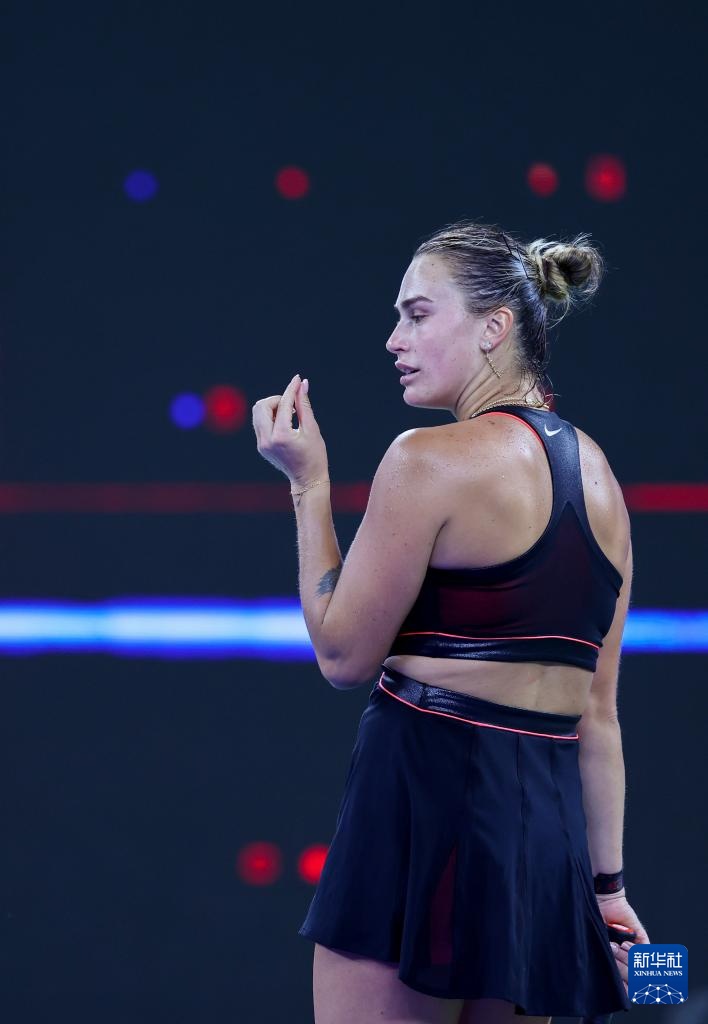 10月11日,萨巴伦卡在比赛中失分后扔掉球拍。