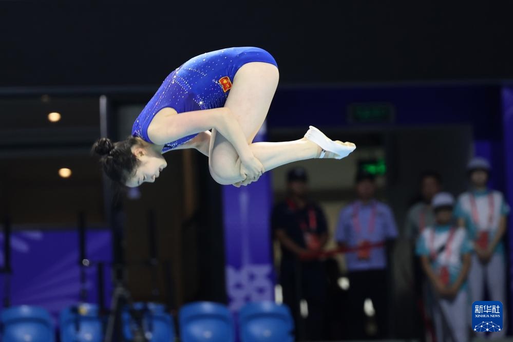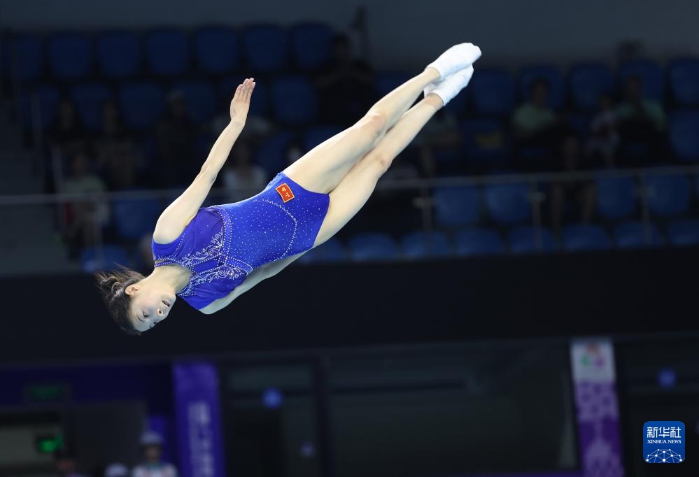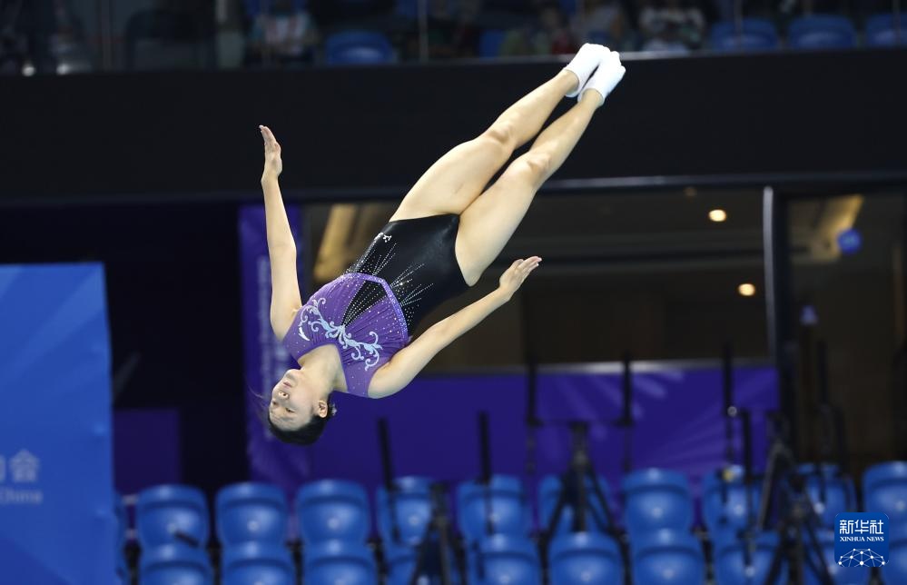 当日,第十五届全运会蹦床女子团体决赛在广州举行。