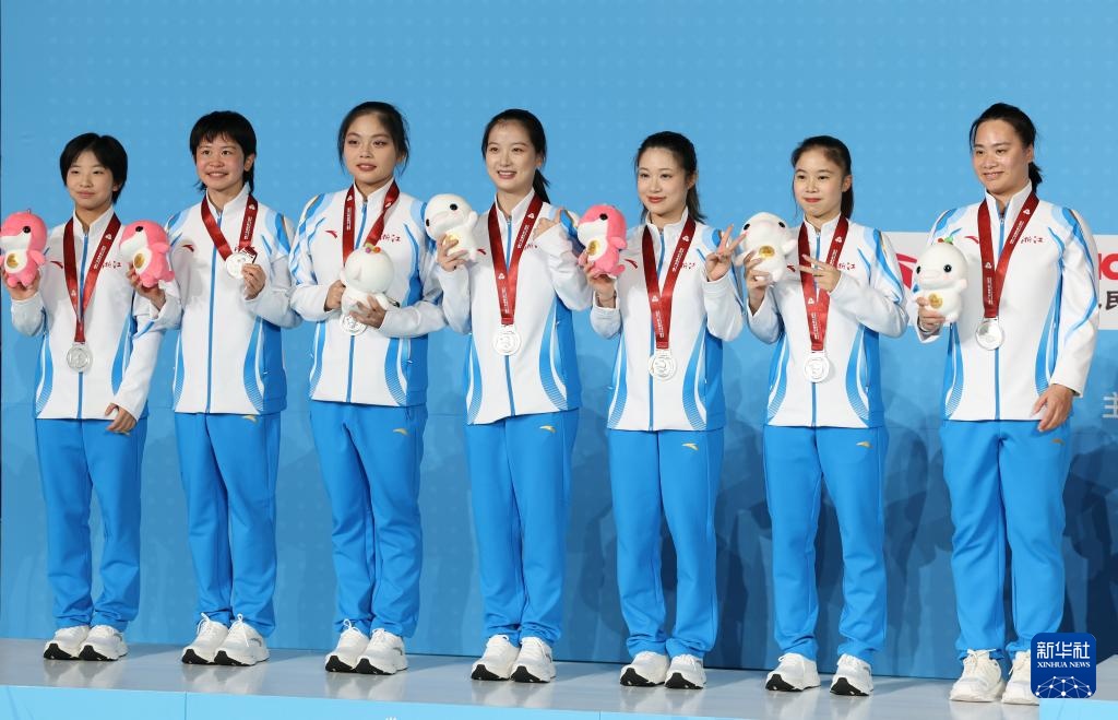 10月11日,亚军浙江队队员在颁奖仪式上。