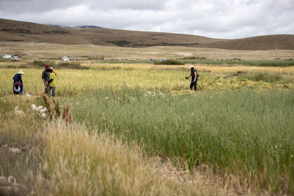 西藏当雄县羊八井镇甲玛村村民收割饲草,为牲畜越冬做准备(9月16日摄)。新华社记者 姜帆 摄