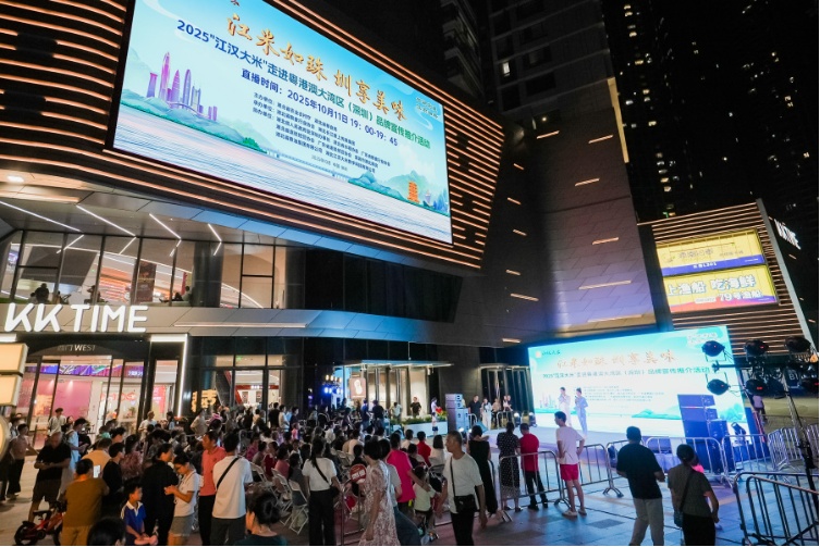 湖北日报讯(记者崔逾瑜、李冲、通讯员张娟、林锐)人声鼎沸、稻香四溢。10月11日晚7点,以“江米如珠 圳享美味”为主题的2025“江汉大米”走进粤港澳大湾区(深圳)品牌宣传推介活动在罗湖区KKTIME购物中心启幕,这也是“江汉大米”第二次与深圳市民再续味蕾情缘。