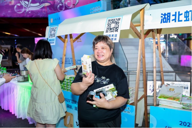 弼塘社区的李女士举着新米体验装十分开心:“之前在超市买过“江汉大米”,孙仔说比别的米好吃。今天专门来凑热闹,不光是扫码免费拿到了新米,抽奖又中了大奖,够晒抵!(特别划算)”